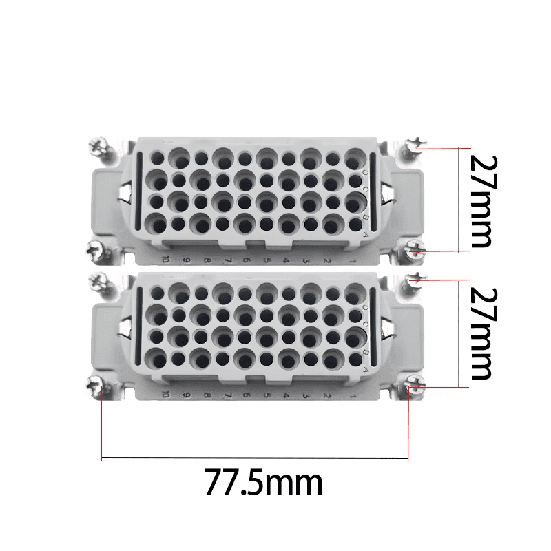 This modular connector pairs H32B housings with 80-pin capacity, supporting 0.14-2.5mm² wires and 7.5Nm torque. It consists of two HD-040-FC. It is ideal for hot runners and renewable projects, so it provides OEM flexibility with ≤3mΩ resistance and 500+ mating cycles.